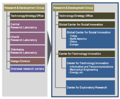 Hitachi, Ltd. ("Hitachi" / TSE:6501) today announced that as of April 1, it will reorganize the Group's current R&D structure. The present three laboratories in Japan (the Central Research Laboratory, the Hitachi Research Laboratory, and the Yokohama Research Laboratory), the Design Division, and overseas research bases will be reorganized into the Global Center for Social Innovation, the Center for Technology Innovation, and the Center for Exploratory Research. The goal of this reorganization is to promote R&D from the customer's perspective, on a global scale.