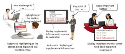 It is expected that this technology can be used to create a communication-support system that uses ICT to recognize the content of speech and provide appropriate information in a broad range of settings where information is explained, such as teleconferences, electronic educational materials, and consultations with customers in stores.