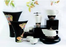 キャプション: <昇雲-工芸コレクション>シリーズのアイデアは、古代の官吏帽の形と組み手をしてお辞儀する姿からきています。工芸家による巧みな金木工法により、複合媒体をボーンチャイナのデザインに融合させ、独特の視覚効果を表現。