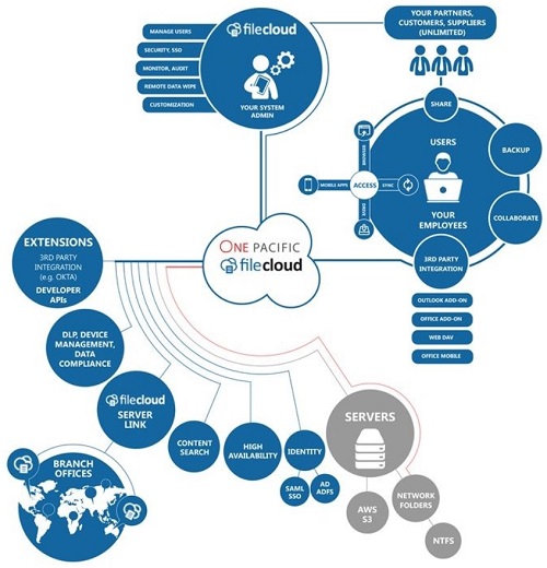FileCloud provides businesses the opportunity to efficiently manage an enterprise-wide file sharing, sync and endpoint backup solution with guaranteed uptime, scalability and redundancy. Offering ONE Pacific clients complete control, total security, flexible branding, data isolation and ownership -- FileCloud is ideal for organizations seeking a cloud-based solution that can be fully tailored to their specific requirements.