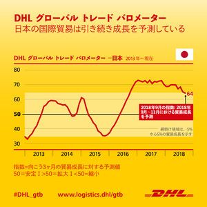 このDHLグローバル・トレード・バロメーター(人工知能、ビッグデータを駆使することにより算定される国際貿易成長に対する早期指標)では、日本の貿易は緩やかな成長基調にあり、2018年第4四半期には64ポイントを記録し、引き続き企業の好調な業績見通しが続くことが示されています。