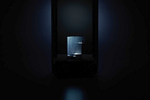 Ozaki一遍又一遍地精心绘制每个雨滴,希望通过自己的手绘作品唤醒这种意识。雨滴是如何投影到台阶上的?还有哪些部分也是艺术家手工完成的?你无法发现光源之所在,答案就藏在精美制作的盒子里。雨仍在下,只有你能听到它的声音。你会感觉到一种存在……看,它就在转角处。
