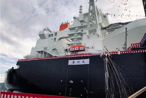 Mitsubishi Shipbuilding Co., Ltd., a Group company of Mitsubishi Heavy Industries, Ltd. (MHI) based in Yokohama, held a christening ceremony today for a next-generation LNG (liquefied natural gas) carrier under construction for TRANS PACIFIC SHIPPING 5 LTD., a joint venture of JERA Co., Inc. (JERA) and Mitsui O.S.K. Lines, Ltd. (MOL). The new ship, named NOHSHU MARU, is the fourth vessel of the latest model "Sayaringo STaGE" type, featuring significant improvements in both LNG carrying capacity and fuel performance due to the adoption of a more efficient hull structure and an innovative hybrid propulsion system. Completion and delivery is scheduled for February 2019, after which the NOHSHU MARU will be put into service, transporting LNG for the Freeport LNG Project in the U.S. state of Texas (in which JERA is participating), among other ventures.