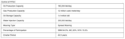 This will be MC's fifth joint FPSO project with SBM and its first in six years in Brazil, the last being the Cidade de Marica and Cidade de Saquarema FPSOs in 2013. MC plans to continue expanding its FPSO and other offshore businesses around the world.