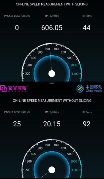 The demonstration uses an online speed measurement business scenario to visually compare the experiences of non-sliced network access and slice-assured network access. The comparison demonstrates excellent 5G slice-assured performance across categories in terms of the downlink peak rate, packet loss rate and latency in securing typical 5G services, fully realizing the slicing selection and modem-centric solutions for 5G terminals. The demonstration results showed that even with overloaded cell blocks built into the demonstration scenario, 5G slice users could still enjoy smooth download rates, extremely low packet loss rates and ultra-low latency service experiences.