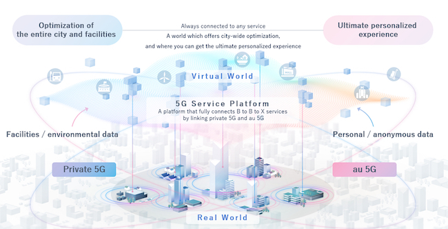 1) Demonstration of technology toward the realization of a "5G Service Platform" that interconnects private 5G with au 5G 2) Co-creation of B to B to X(1) services that combine the real and the virtual worlds 3) Building an ecosystem with partners through mutual participation in the 5G Alliance operated by the two companies