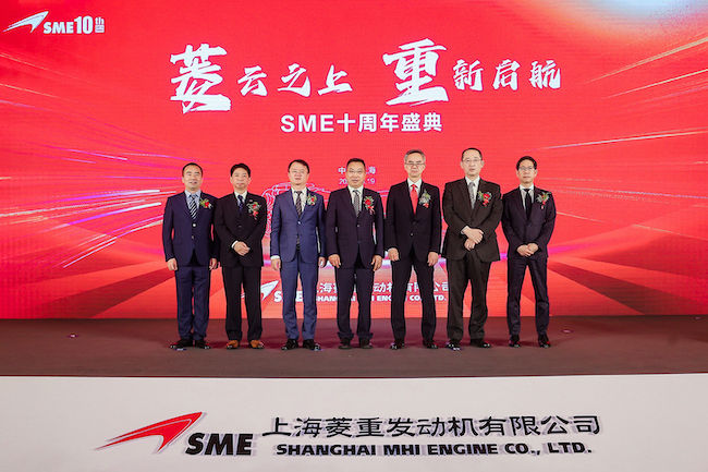 Shanghai MHI Engine Co., Ltd. (SME), a joint venture of Shanghai New Power Automotive Technology Company Ltd. (SNAT) and Mitsubishi Heavy Industries Engine & Turbocharger, Ltd. (MHIET), celebrated its 10th anniversary and held a ceremony on May 19. Top management of both SNAT and MHIET attended the ceremony which took place in Shanghai.