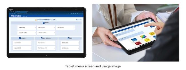 TOKYO, Oct 13, 2023 - (JCN Newswire) - Fujitsu today announced the development of a system that allows customers to easily complete transactions in a concise manner at all branches of the 77 Bank, Ltd. (1) (hereinafter, the 77 Bank) using an “in-store tablet” that utilizes Fujitsu's Customer Engagement Solution CHORDSHIP (hereinafter, CHORDSHIP) built on cloud. Its introduction was recently completed at all of the 77 Bank’s branches in Japan for used since September 2023.