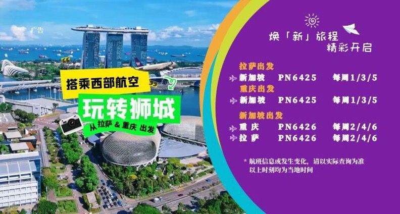 SINGAPORE, Dec 17, 2024 - (JCN Newswire) - From December 25, 2024, West Air will launch a new Lhasa ⇌ Chongqing ⇌ Singapore international route. The opening of this route will promote cultural exchanges between western China and Singapore. It is also the first international route to be added since the official renaming of Lhasa Gongga International Airport.